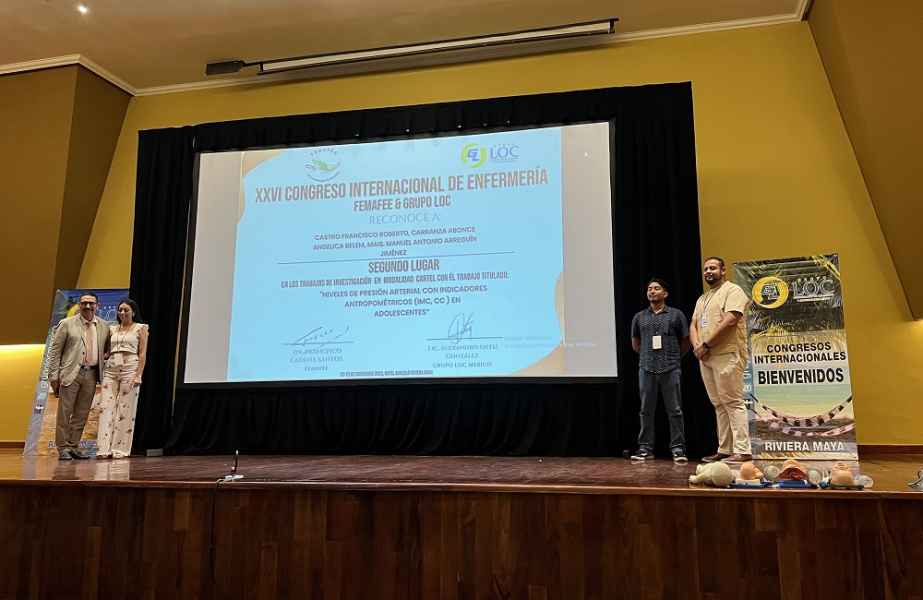 El segundo lugar aborda los “Niveles de presión arterial con indicadores antropométricos (índice de masa corporal y circunferencia de cintura) en adolescentes” por Angélica Belem Carranza Abonce y Francisco Roberto Castro.