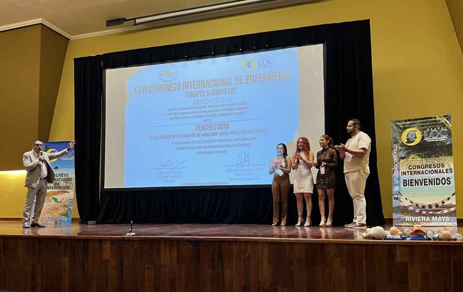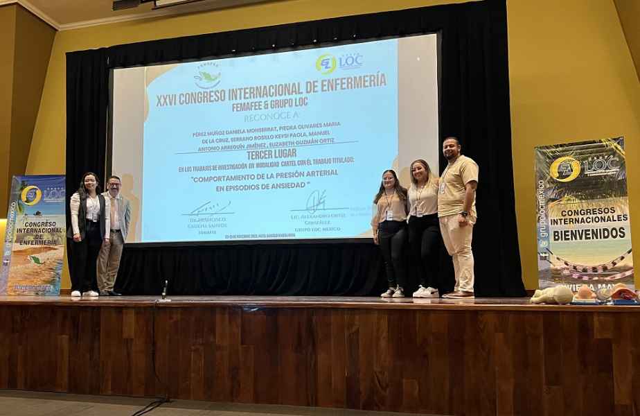 En esta ocasión, en el marco del XXVI Congreso Internacional de Enfermería “Los efectos de la tecnología y los cuidados de enfermería al paciente grave” celebrado en Puerto Aventuras, Quintana Roo con organización de la Federación Mexicana de Asociaciones Facultades y Escuelas de Enfermería (FEMAFEE), estudiantes del programa Licenciatura en Enfermería y Obstetricia de la Sede Janicho participaron como ponentes de 11 proyectos de investigación realizados con la asesoría de sus docentes.