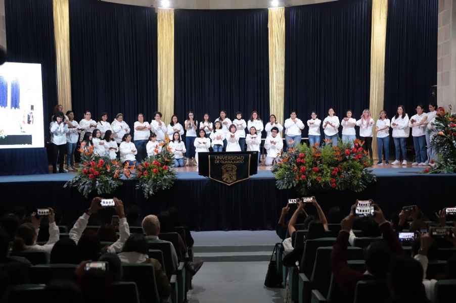 Guanajuato, Gto., a 02 de diciembre de 2023.- En el marco del Día Internacional de las Personas con Discapacidad, en la Universidad de Guanajuato (UG) se llevó a cabo la clausura de actividades semestrales del Grupo Organizado “Habla en Señas UG”, en el Auditorio General del Edificio Central de la Casa de Estudios.