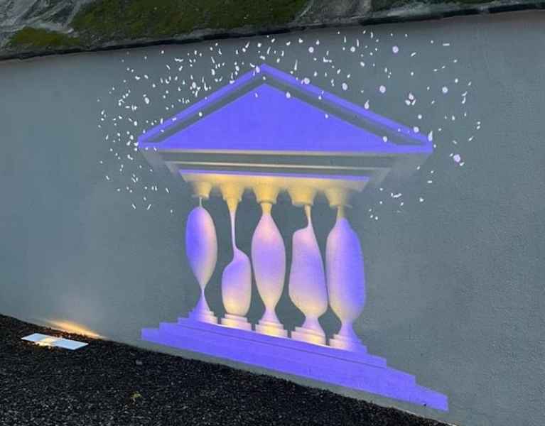 En el ingreso del recinto, se podrán observar obras en arte digital proyectadas sobre los muros las cuales son alusivas a los pilares de edificios representativos de la antigua Grecia, mientras que, al interior del inmueble, se aprecian obras con manejo de distintos conceptos y técnicas que transportan a un recorrido histórico hasta la democracia representativa contemporánea.