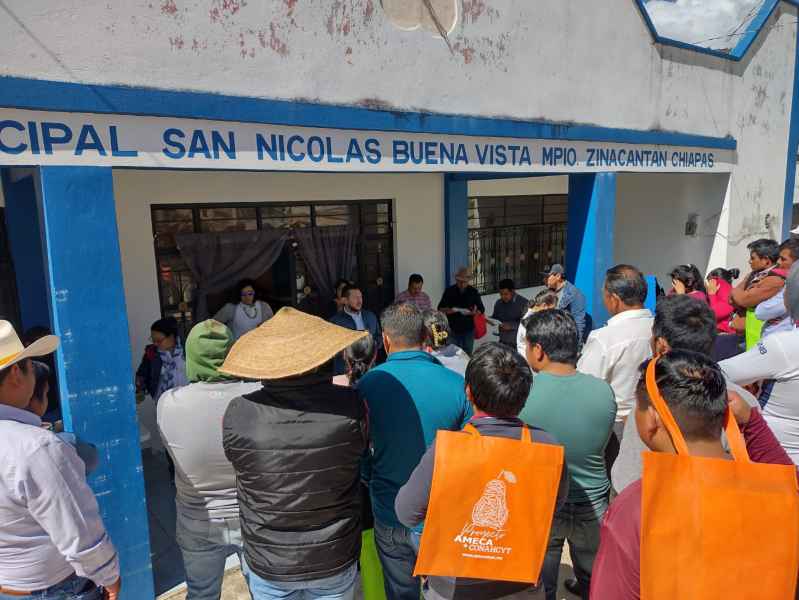 Además, se repartieron calendarios en idioma tsotsil, realizados por los miembros de los Consejos 2021-2023 y 2023-2025 de la AMECA A. C., con información relacionada con la buena alimentación, principios de limpieza y desinfección de alimentos y su conservación.