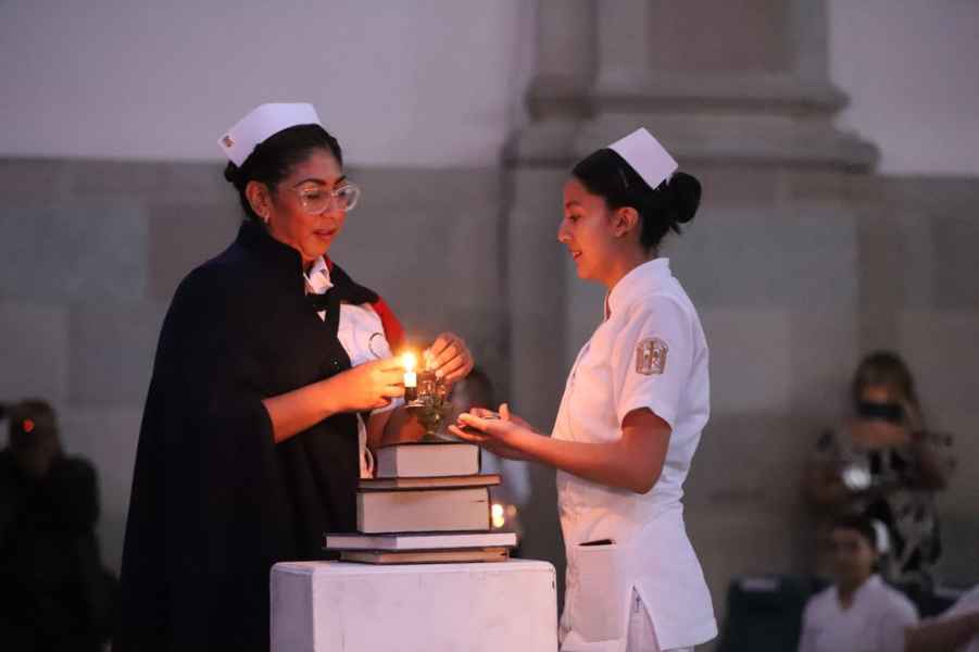 Asimismo, les exhortó a recordar no solo las lecciones de los libros sino lo aprendido en el camino, pues “En el mundo de la enfermería cada día se presenta la oportunidad para marcar la diferencia, que abona a un mundo más justo… ustedes serán faros de luz en momentos oscuros”.