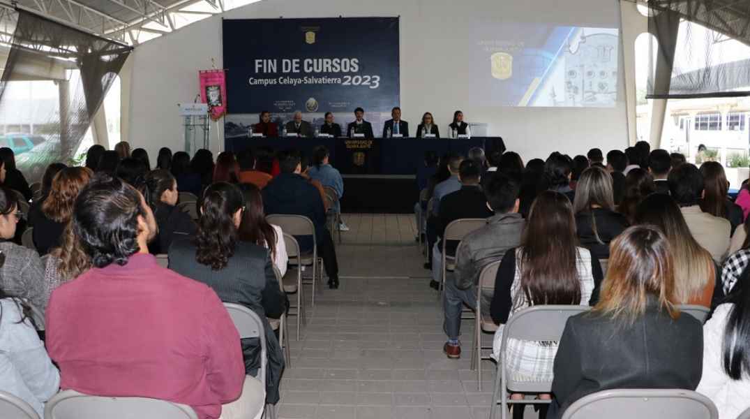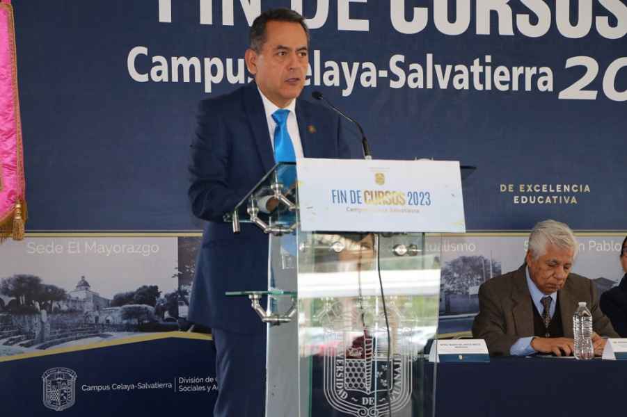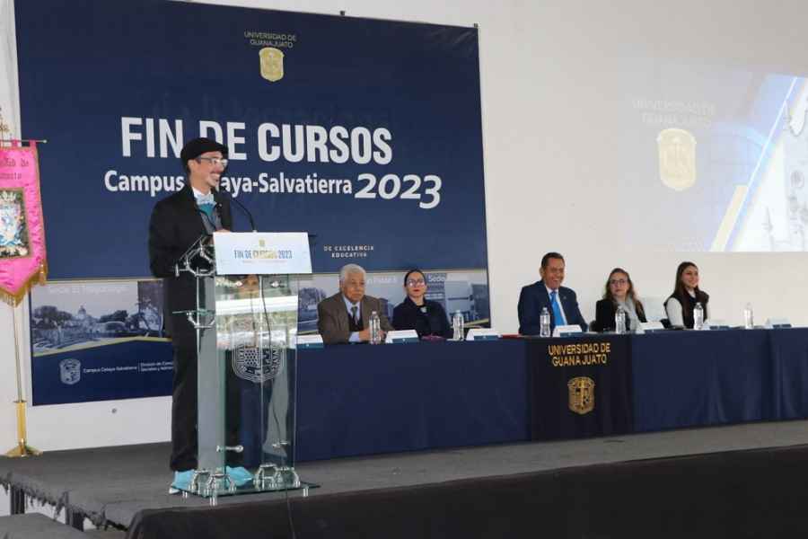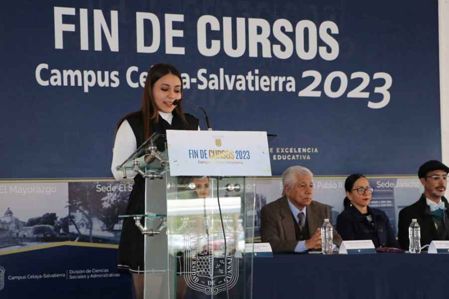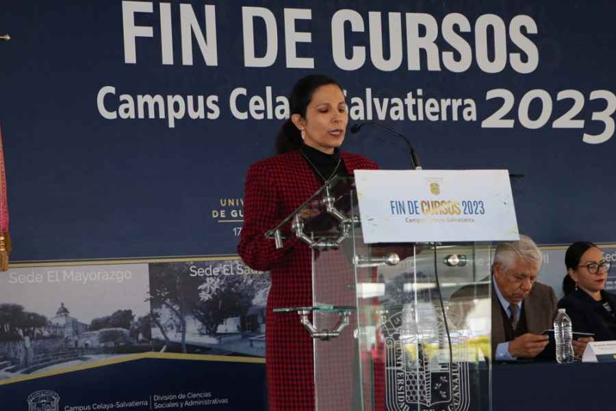 Guanajuato, Gto., a 11 de diciembre de 2023.- En la ceremonia de fin de cursos de los programas educativos de la División de Ciencias Sociales y Administrativas (DCSA) del Campus Celaya-Salvatierra de la Universidad de Guanajuato, se exhortó a la comunidad estudiantil a trabajar todos los días para mejorar el contexto que se vive actualmente, puesto que “nuestra alma mater nos dio todos los valores y conocimientos necesarios para cumplir esa misión y ahora nos corresponde a nosotros como adultos potenciar eso que se nos dio”, dijo Lilia Naomi Cano, egresada de la Licenciatura en Administración UG.