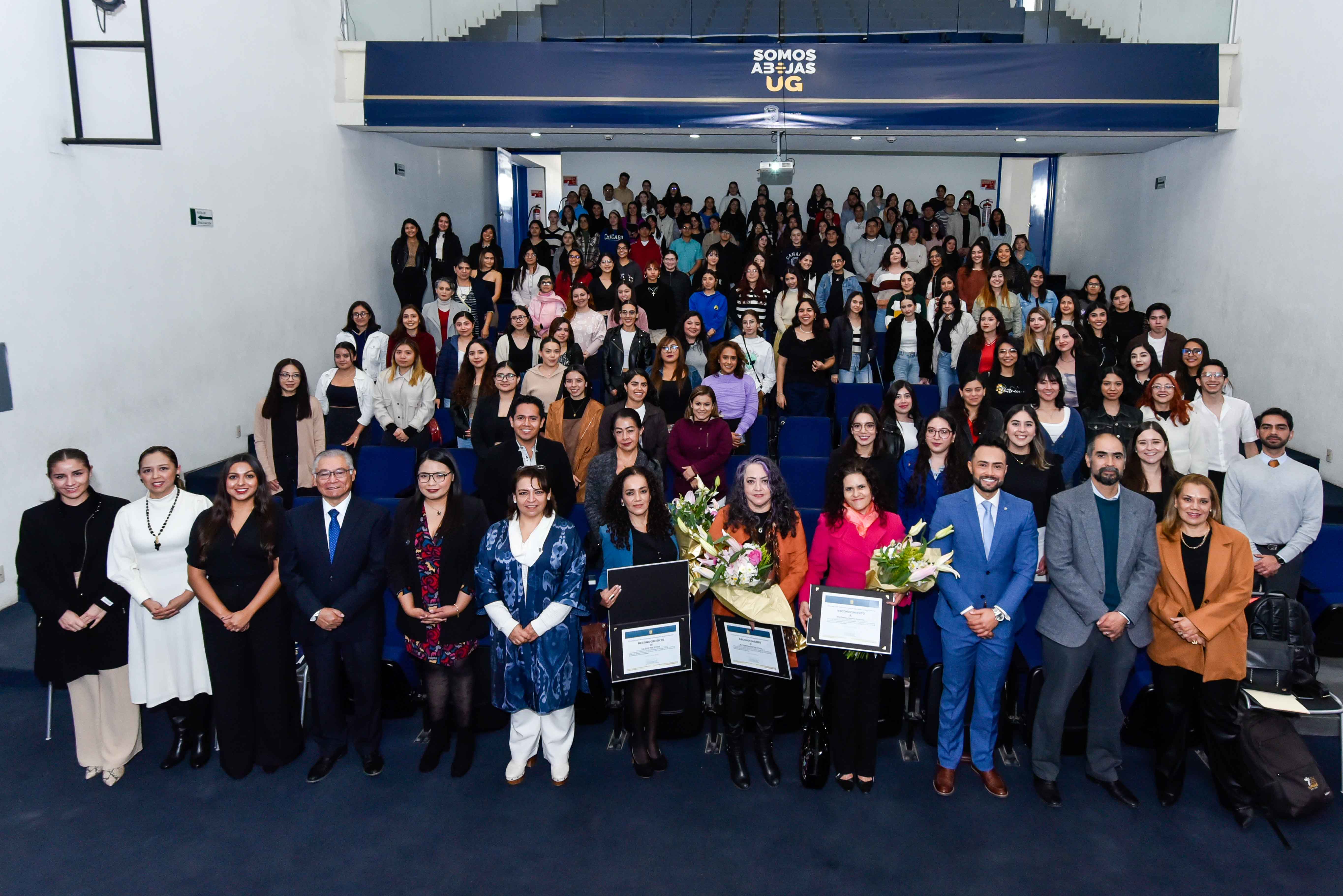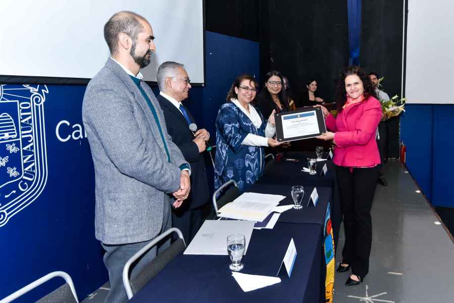 Asimismo dirigió unas sentidas palabras a tres profesoras del Departamento de Medicina y Nutrición a quienes en este evento se rindió un homenaje por veintiocho años de docencia dentro de la UG. Se trata de la Dra. Luz Elvia Vera Becerra, Coordinadora de la Licenciatura, así como a la Dra. Ma. Guadalupe Reynaga Ornelas y la Mtra. Elsa Patricia Olivares Navarrete, las tres académicas son fundadoras del programa en el Campus León.