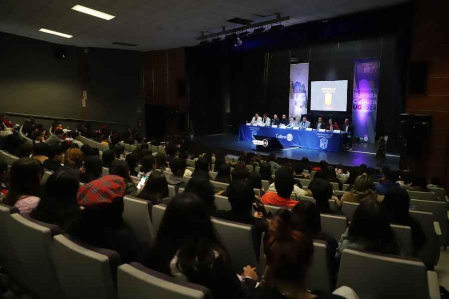 Guanajuato, Gto., a 31 de enero de 2024.- Con la intención de llevar las actividades académicas, espectáculos y cursos de educación continua más allá de las aulas universitarias, la Dirección de Extensión Cultural de la Universidad de Guanajuato (DEC – UG) realizó la presentación de la Agenda Cultura UG 2024 en las instalaciones del auditorio de la Escuela de Nivel Medio Superior de Irapuato (ENMS).
