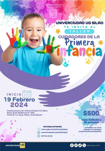 Guanajuato, Gto., a 07 de febrero de 2024.- El próximo 19 de febrero dará inicio la segunda generación del Taller de Cuidadores de la Primera Infancia en las instalaciones de Univerciudad UG Silao, el cual tiene como objetivo contribuir al saludable desarrollo y crianza de los niños y las niñas en la primera infancia.