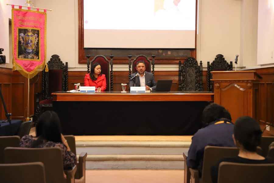 Guanajuato, Gto., a 13 de febrero de 2024.- La Maestría en Análisis Político (MAP), de la División de Derecho, Política y Gobierno, de la Universidad de Guanajuato, inauguró su Ciclo de Conferencias sobre Análisis Político con una ponencia del Dr. Fernando Barrientos del Monte, con el tema “La elección presidencial en los Estados Unidos de América. ¿Lecciones para América Latina?”, realizada en el Salón de Actos, del Edificio Central.