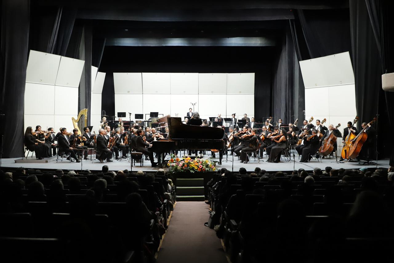 Guanajuato, Gto., a 17 de febrero de 2024.- Con un Teatro Principal pletórico, la Orquesta Sinfónica de la Universidad de Guanajuato (OSUG) presentó el programa musical de su primera temporada y que en esta ocasión contó con Grace Echauri como directora invitada y con Rachid Bernal como solista en el piano.