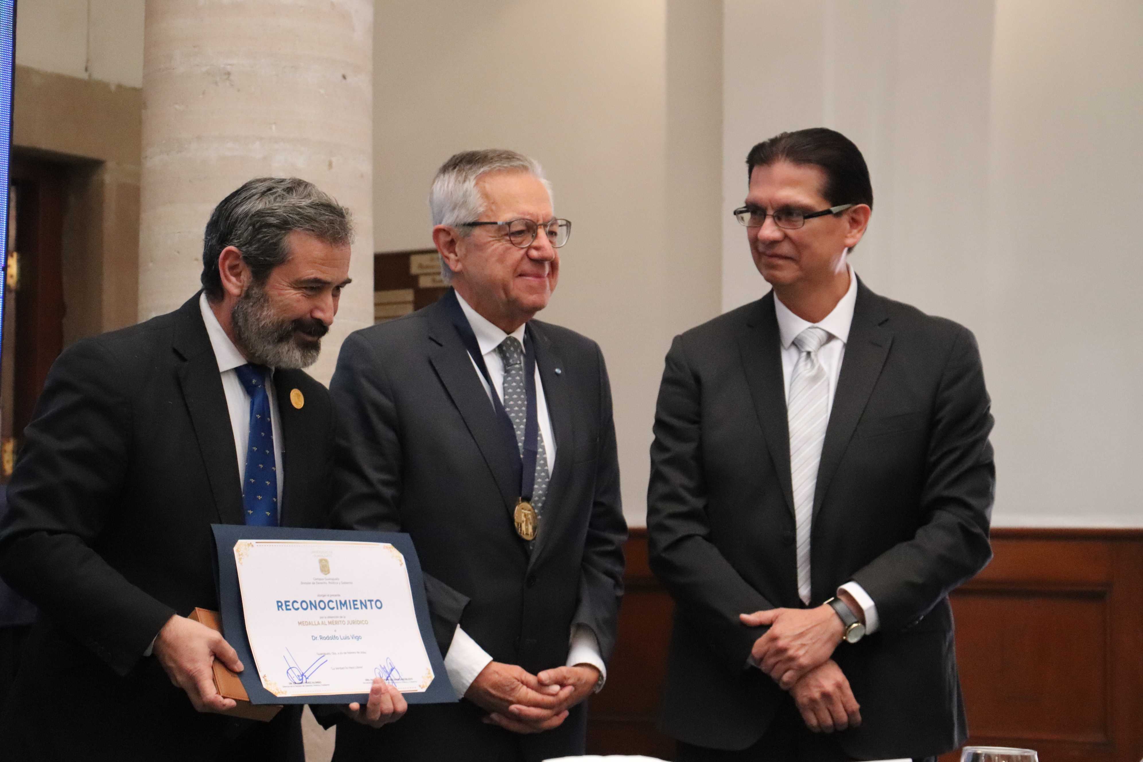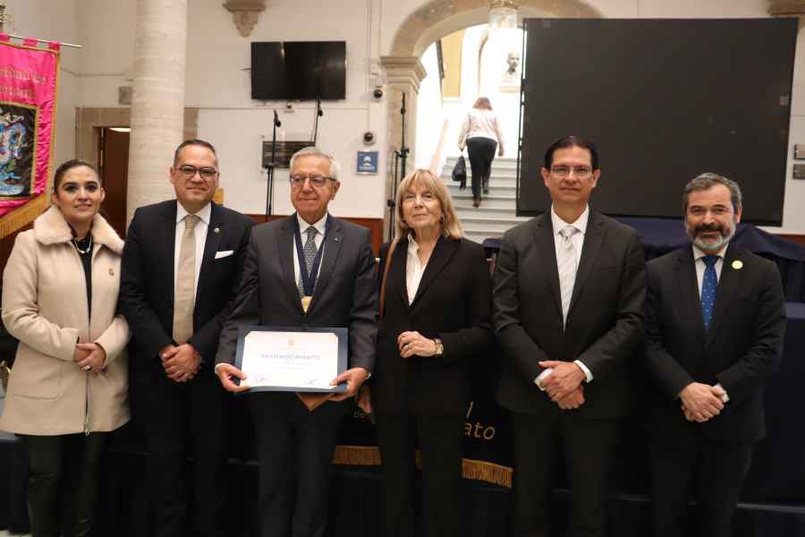 Guanajuato, Gto., a 20 de febrero de 2024.- La Universidad de Guanajuato, a través de la División de Derecho, Política y Gobierno del Campus Guanajuato (DDPG), entregó la “Medalla al Mérito Jurídico” al Dr. Rodolfo Luis Vigo, reconocido jurista argentino quien es calificado como el filósofo del derecho latinoamericano más importante en la actualidad.