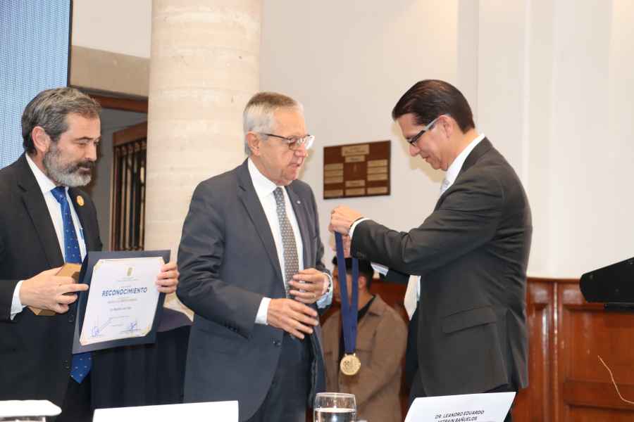 Es un gran honor para la Universidad de Guanajuato, externó el Dr. Picón Núñez al hacer entrega de esta medalla al destacado jurista, de excepcional trayectoria en la ciencia jurídica y en la formación de nuevas generaciones, cuya carrera ejemplar ha dejado marca una indeleble en la jurisprudencia y en el pensamiento jurídico, con una sólida formación académica y cargos de gran responsabilidad.