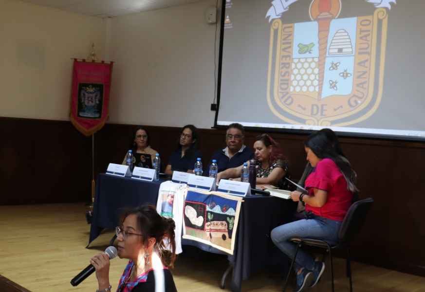 De igual manera comentaron el texto, la Mtra. Sandra Estrada Maldonado, profesora investigadora del Departamento de Estudios Sociales de la Universidad de Guanajuato, fundadora del colectivo “Bordamos memoria” y David Licea, estudiante de la Maestría en Filosofía.