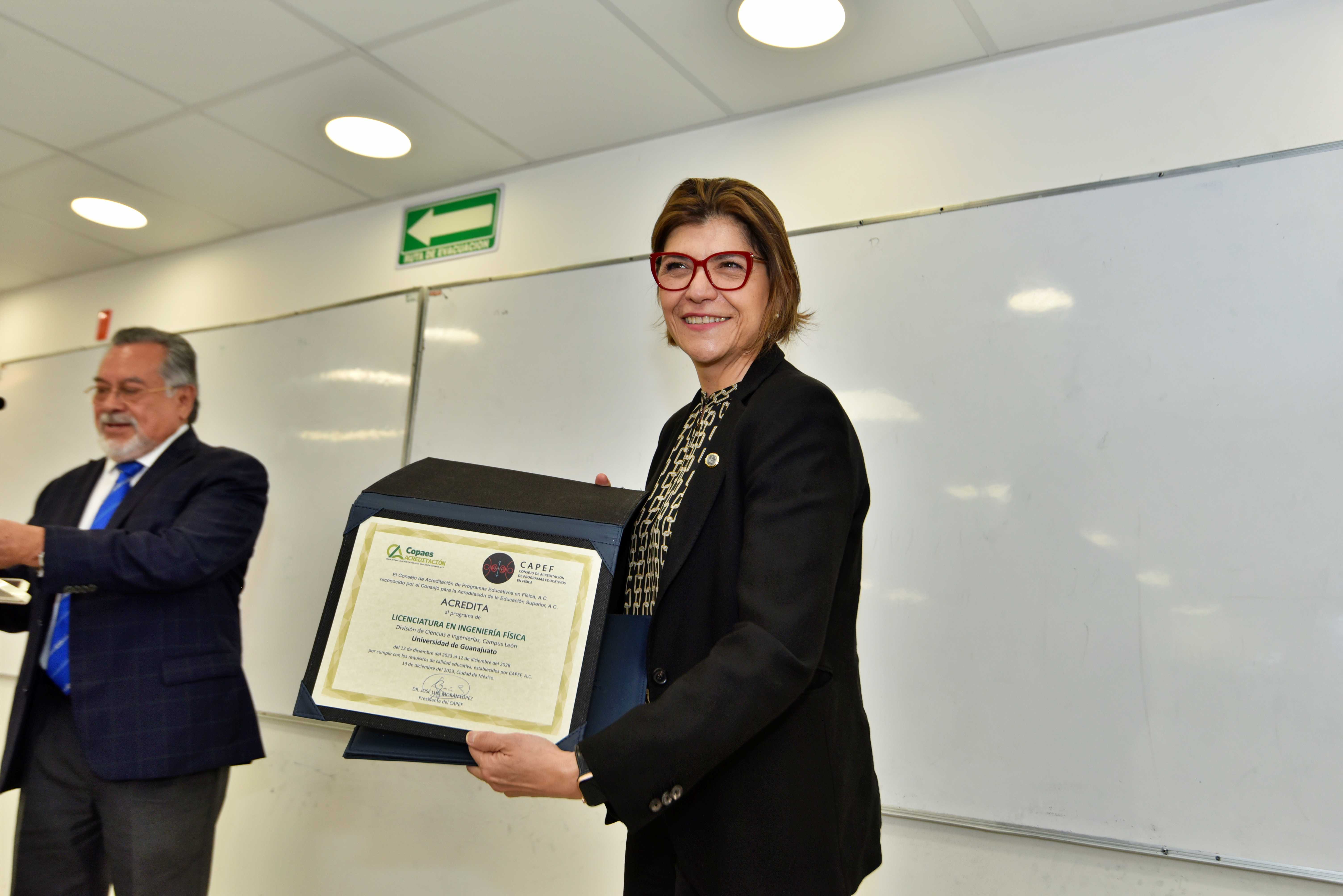 León, Gto., a 01 marzo de 2024.- Los programas educativos de Ingeniería Física y Física de la Universidad de Guanajuato (UG) Campus León pertenecientes a la División de Ciencias e Ingenierías (DCI), recibieron la entrega de reconocimiento de reacreditación por parte del Consejo de Acreditación de Programas Educativos en Física (CAPEF), lo cual evoca una sólida preparación de recursos humanos de alto nivel académico para realizar investigación en ciencia básica y aplicada, que desde una nueva perspectiva se denomina ciencia libre y ciencia dirigida.