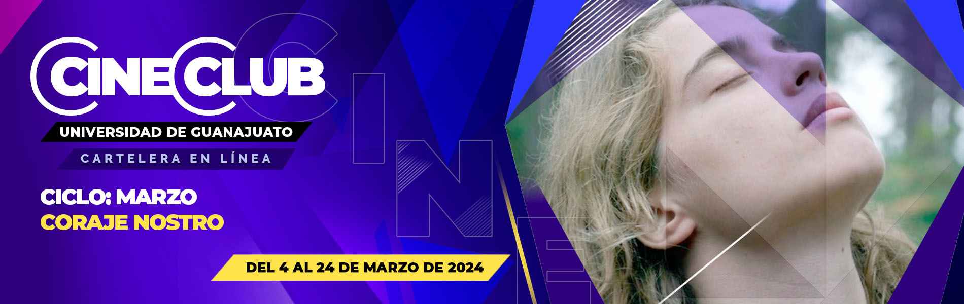 El Cine Club estrena el ciclo en línea, “Coraje nostro”, disponible del 4 al 24 de marzo; así como el ciclo “Ellas programan” con funciones el 7 y 8 de marzo en punto de las 18:00 y 20:00 horas en el Auditorio Euquerio Guerrero, actividad especial en el marco del Día Internacional de la Mujer. Consulta la programación en www.cultura.ugto.mx.