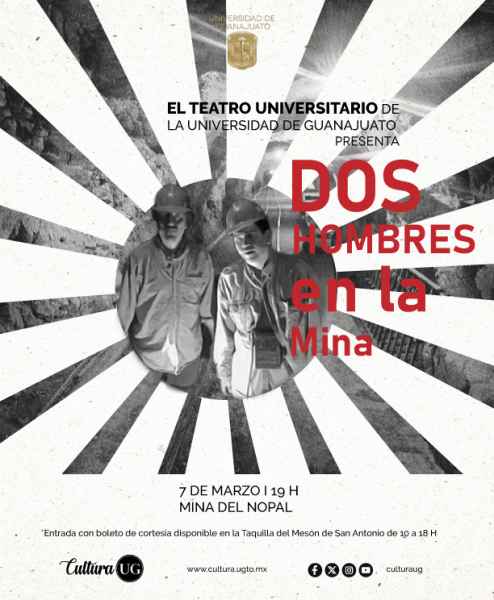 El 7 de marzo estará lleno de actividades. En el MUG, de 13:00 a 17:00 horas, tendrá lugar el Taller de foto bordado, con registro previo, realizado por Carla Jazmín Morales Castillo, estudiante de la Licenciatura en Comercio Internacional, en el marco de Espiral, Foro Universitario. Luego, el Teatro Principal contará con dos eventos de acceso libre: a las 18:00 horas se desarrollará el conversatorio “Soy Mujer y Soy Artista” y a las 19:00 horas la Estudiantina Femenil de la UG presentará su programa “Con M de Mujer, Música y México”. Para concluir la jornada, el Teatro Universitario presentará “Dos Hombres en la Mina”, en la Mina del Nopal; los boletos de cortesía estarán disponibles en el Mesón de San Antonio.