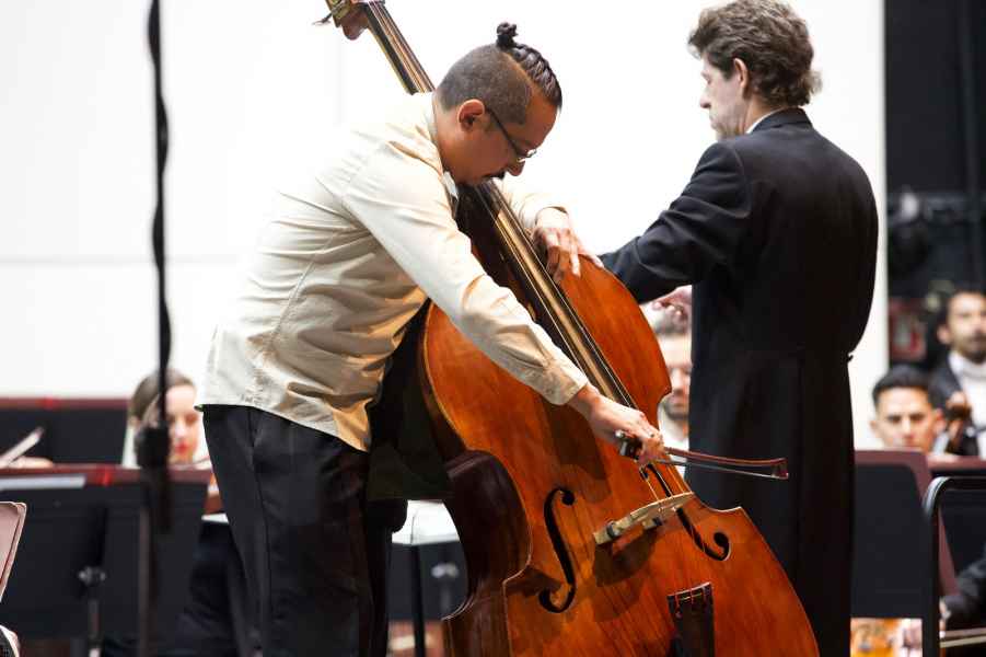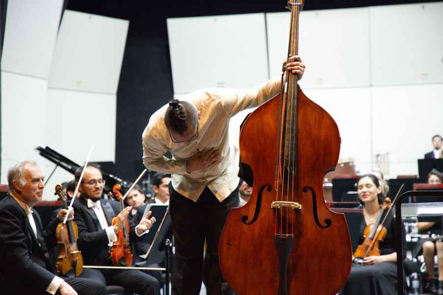 Durante su participación, el contrabajista Rodrigo Mata mostró en su estreno una gran variedad de sonoridades y texturas que no dejaron de perseguir su objetivo en cada movimiento de las piezas interpretadas, con las cuales transmitió su pasión y entrega hacia la música.