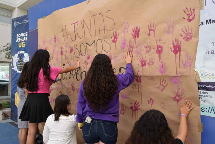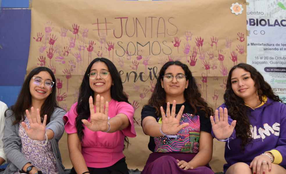 Irapuato, Gto. a 4 de marzo de 2024.- A la voz de “No estás sola” y “Juntas somos invencibles”, la Sociedad de Alumnos de la Licenciatura en Ingeniería en Alimentos BEE SAIA de la Universidad de Guanajuato (UG) realizó varias actividades para conmemorar el Día Internacional de la Mujer 2024 (8M).