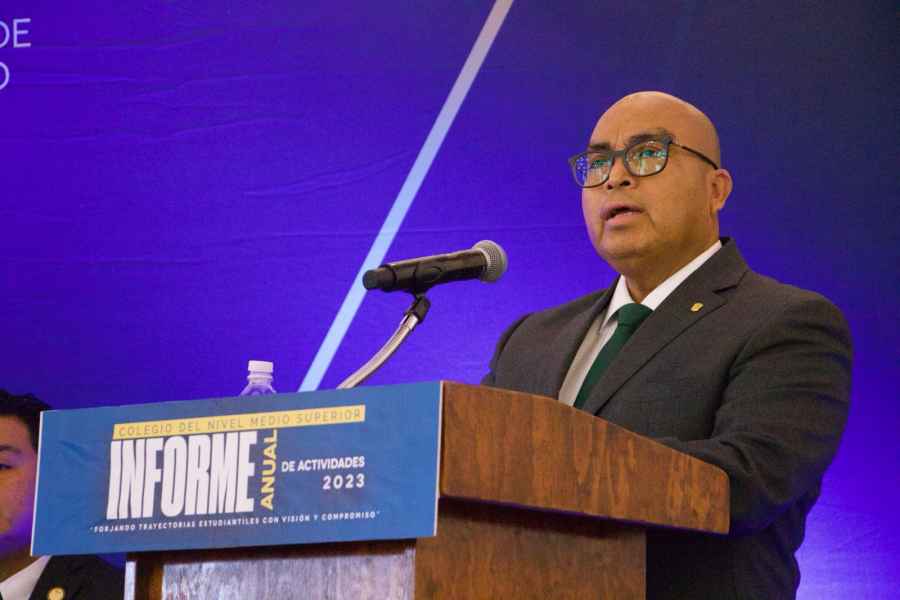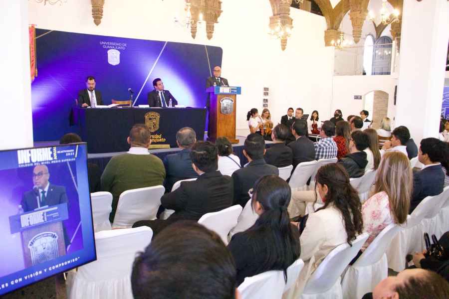Guanajuato, Gto., a 14 de marzo de 2024.- Se llevó a cabo el Informe Anual de Actividades del Colegio del Nivel Medio Superior (CNMS) de la Universidad de Guanajuato (UG), encabezado por su Director el Dr. J. Merced Rizo Carmona, acompañado por las diversas autoridades de las 11 Escuelas de Nivel Medio Superior (ENMS) que integran el CNMS.