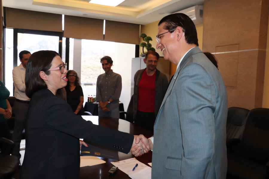 En el Despacho de la Rectoría del Campus Guanajuato, se dieron cita el Mtro. Gabriel Alejandro Andreu de Riquer, Secretario Académico del Campus Guanajuato, el Dr. Miguel Ángel Hernández Fuentes, Director de la División de Ciencias Sociales y Humanidades y la Secretaria Académica de la División de Ciencias Sociales y Humanidades Dra. Krisztina Zimányi,