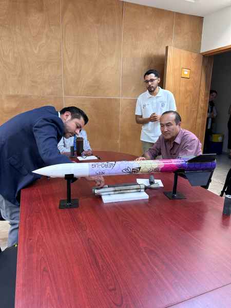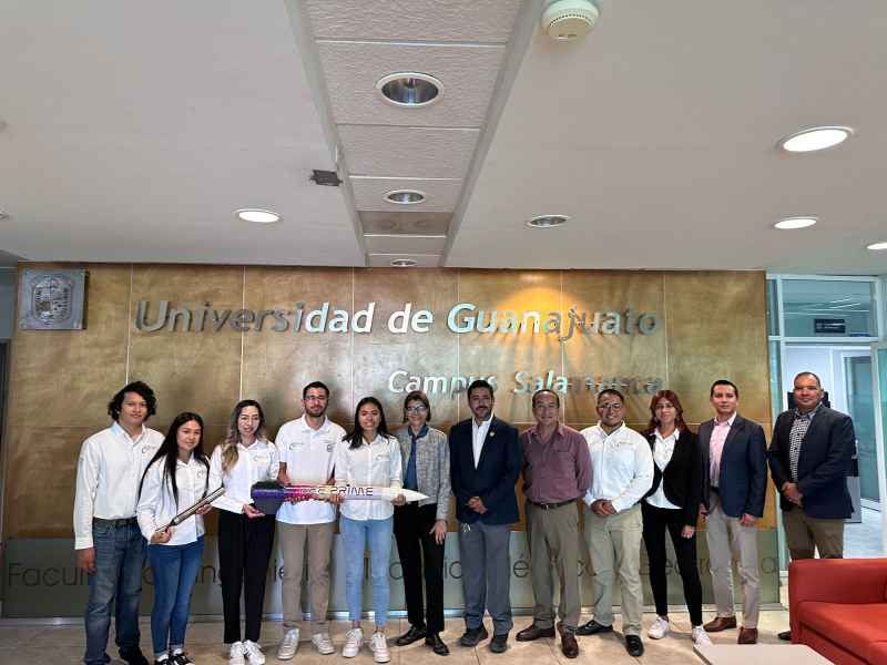 En la víspera de su viaje, el grupo organizado AERO UG acompañados por su asesor, el Dr. Víctor Alfonso Ramírez Elías y directivos de la División de Ingenierías, presentaron el prototipo diseñado y construido por las y los estudiantes con apoyo de las autoridades de la DICIS a la Dra. Claudia Susana Gómez López, Rectora General de la Universidad de Guanajuato, quien les deseó el mayor de los éxitos.