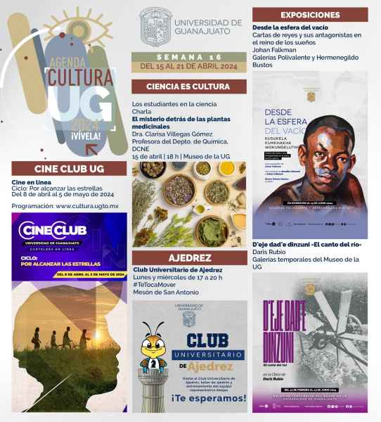 Guanajuato, Gto., a 12 de abril de 2024.- Una gran variedad de exposiciones llenas de colores, tradiciones y ciencia tiene la agenda cultural de la Universidad de Guanajuato (ACUG) en este mes de abril.