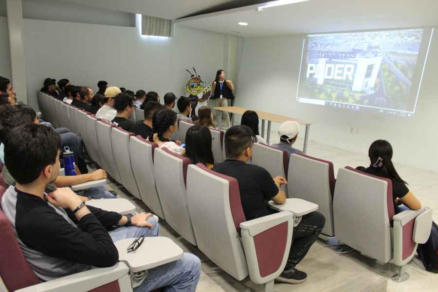 La Lcda. Mariana Cruces, del área de Desarrollo Organizacional de American Axle and Manufacturing Inc., empresa de componentes y sistemas de transmisión para la industria automotriz, presentó a las y los estudiantes de la Universidad de Guanajuato (UG) en la sede Salamanca los programas de colaboración para que adquieran experiencia.