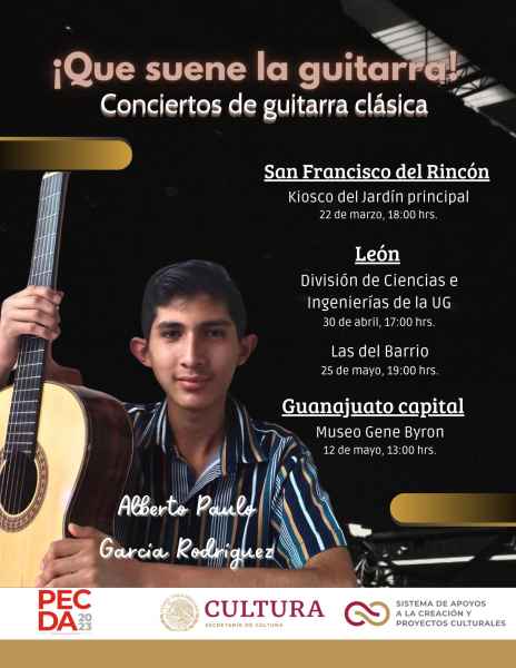 En el Campus León, la comunidad estudiantil de la División de Ciencias e Ingenierías invita al concierto de guitarra clásica de Teresa Azalea García Ramírez y Alberto Paulo García Ramírez, este 12 de mayo a las 13:00 horas en la Casa Museo Gene Byron. En el arte visual “Caminos de Guanajuato, ruta 17-35”, exposición fotográfica de Vidal Berrones Murillo continuará abierta al público hasta el 18 de junio en el vestíbulo de la Torre Vida UG, Sede San Carlos.