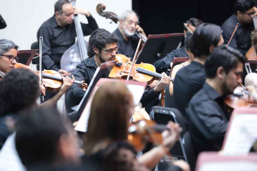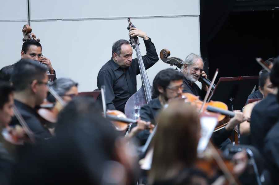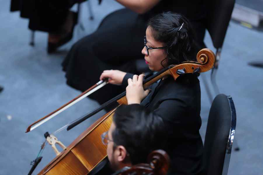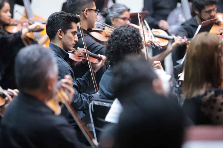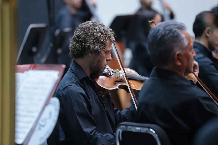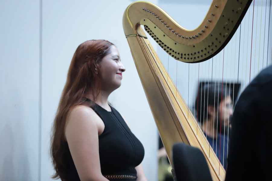 Sergio González quien funge como co-principal de la sección de segundos violines de la OSUG, se desempeñó como concertino de la gala e interpretó, junto a la arpista Alejandra de Ita López, la pieza “Summerland” de William Grant Still para sorpresa de las y los asistentes al evento.