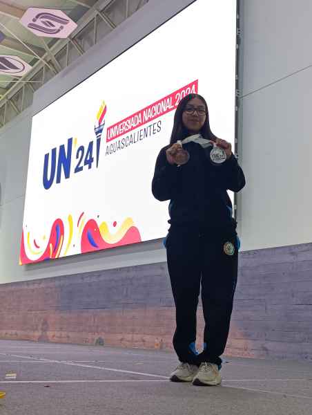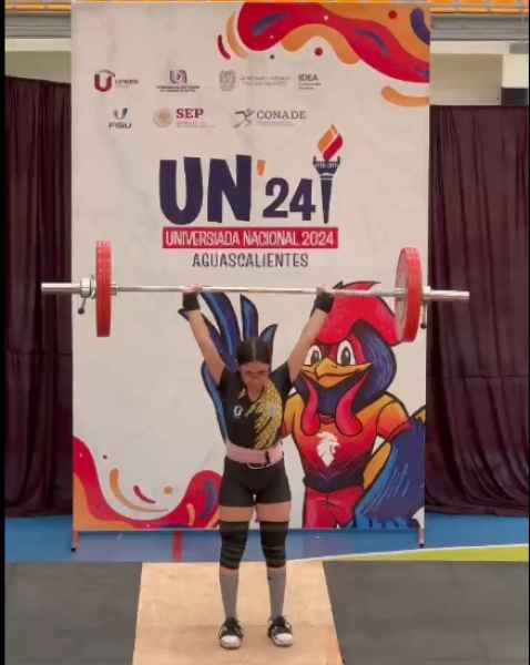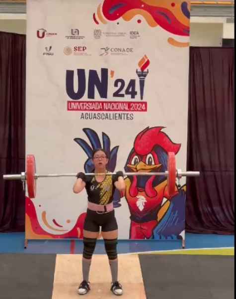 Aguascalientes, Ags., a 12 de mayo de 2024.- La atleta del Equipo Representativo de Halterofilia de la Universidad de Guanajuato, Ana Paloma Nava Castillo, obtuvo la medalla de plata y bronce dentro de la categoría de 45 kilogramos en la rama femenil de la Universiada Nacional 2024 del Consejo Nacional del Deporte de la Educación A.C. (CONDDE).