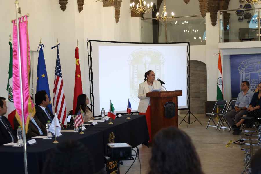 Por su parte, la Directora de Internacionalización UG Mtra. Adriana Aguilera Arrieta mencionó que dicha actividad es uno de los ejercicios más sanos y enriquecedores que pueden hacer las y los estudiantes del Nivel Medio Superior. Asimismo, elogió los diversos ejercicios de simulación de la ONU, los cuales se presentan con un quehacer lúdico y profesional, que permite la adquisición de múltiples facultades y competencias necesarias para profesionistas de la actualidad.