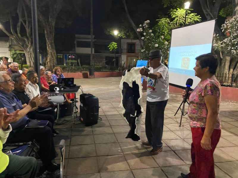 Por otra parte, la Dra. María Áurea Valerdi González, Directora del Departamento de Estudios Sociales de la DCSyH, del Campus León, en compañía de la Mtra. Elba Gabriela Falcón Hernández, representante de la Cámara de la Industria de Curtiduría del Estado de Guanajuato (CICUR) entregaron los documentos y obsequios en agradecimiento por la colaboración tanto a las personas entrevistadas como al equipo de producción en el marco del Programa Cultural del 427 Aniversario de la fundación de Barrio Arriba.