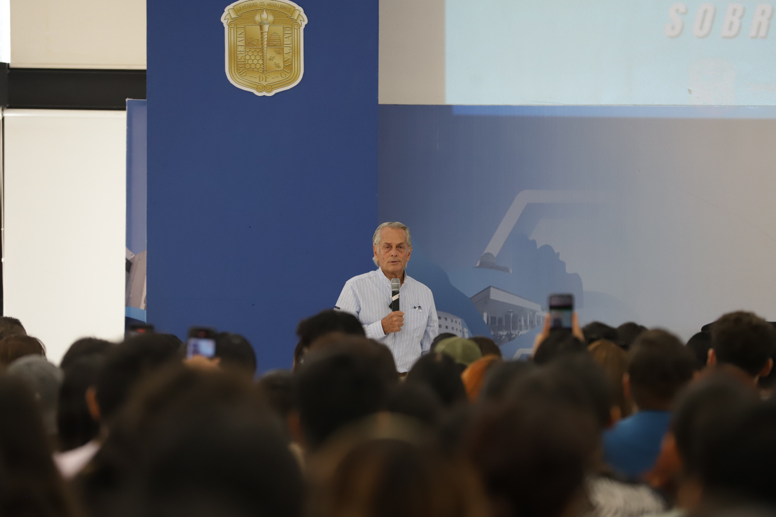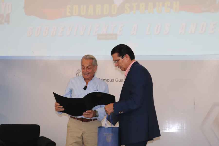 Guanajuato, Gto., a 22 de mayo de 2024.- En el marco de los festejos por el Día del Estudiante (DE), la comunidad universitaria se volcó a los Espacios Magnos del Campus Guanajuato de la Universidad de Guanajuato, para escuchar la conferencia magistral del arquitecto Eduardo Strauch, uno de los sobrevivientes del accidente aéreo de 1972 en los Andes.