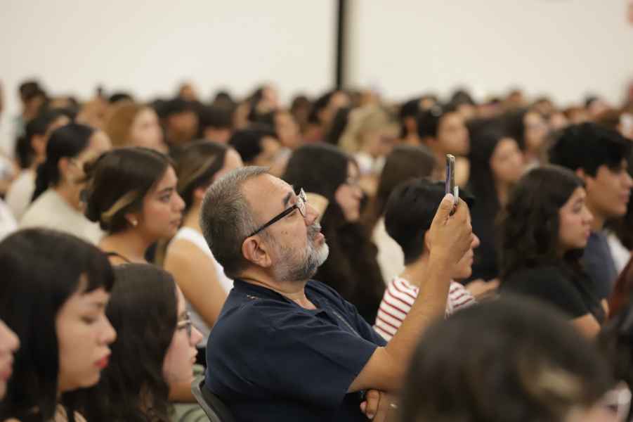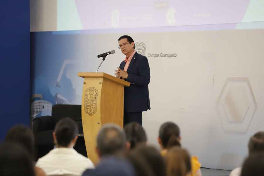 En su mensaje de bienvenida al conferencista y comunidad estudiantil, el Dr. Martín Picón Núñez, Rector del Campus Guanajuato, pidió a las y los jóvenes fortalecer su identidad y disfrutar este periodo de su vida, que es muy corto pero muy intenso, deja grandes recuerdos y amistades para toda la vida, “es un tiempo de reflexión y de valorar todo lo que la institución les ofrece, tiempo para soñar, establecer metas y trabajar arduamente”, dijo.