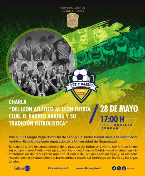 En la misma sede, al día siguiente, 28 de mayo en punto de las 17:00 horas, aguarda la charla “Fút e historia” por Luis Alegre, Cronista de la ciudad de León y Pedro Daniel Reveles, egresado de la Universidad de Guanajuato y Coordinador de eventos, exposiciones y atención a visitantes de la Dirección General de Archivos de León, Gto.