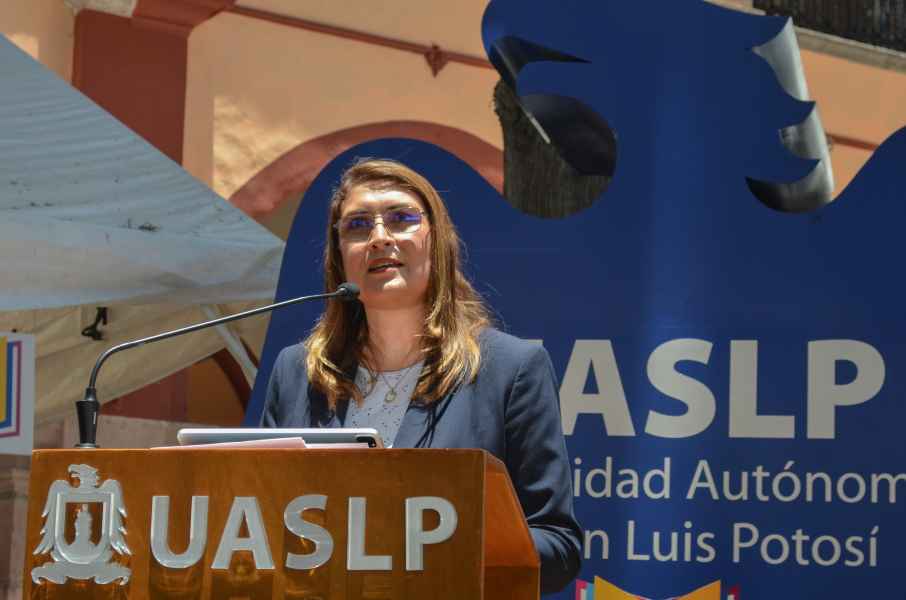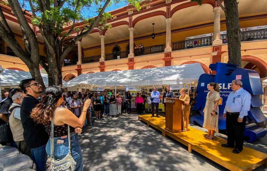 En el Patio de la Autonomía, en representación de la Rectora General, Dra. Claudia Susana Gómez López, la Secretaria de Gestión y Desarrollo de la Universidad de Guanajuato, Dra. Graciela Ma. de la Luz Ruiz Aguilar distinguió la celebración de la Feria Nacional del Libro UASLP en dicho espacio, considerado como una joya arquitectónica de estilo neoclásico-ecléctico, el cual inicio su edificación a mediados del siglo XVII.