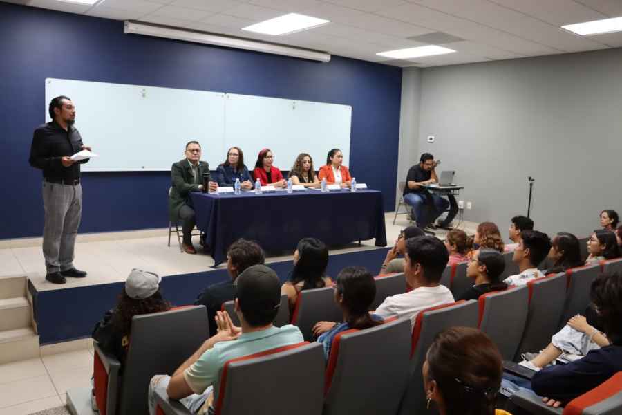 Un tema que propició la exposición dialógica entre estudiantes y expositore(a)s, fue cómo es la transición de alumno(a) a profeso(a), en el cual participaron las psicólogas Mireya Cruz Tapia y Brenda De La Luz Martínez Medina, y los psicólogos Marco Antonio Rojas López y Francisco Jacob Segura Ortega.
