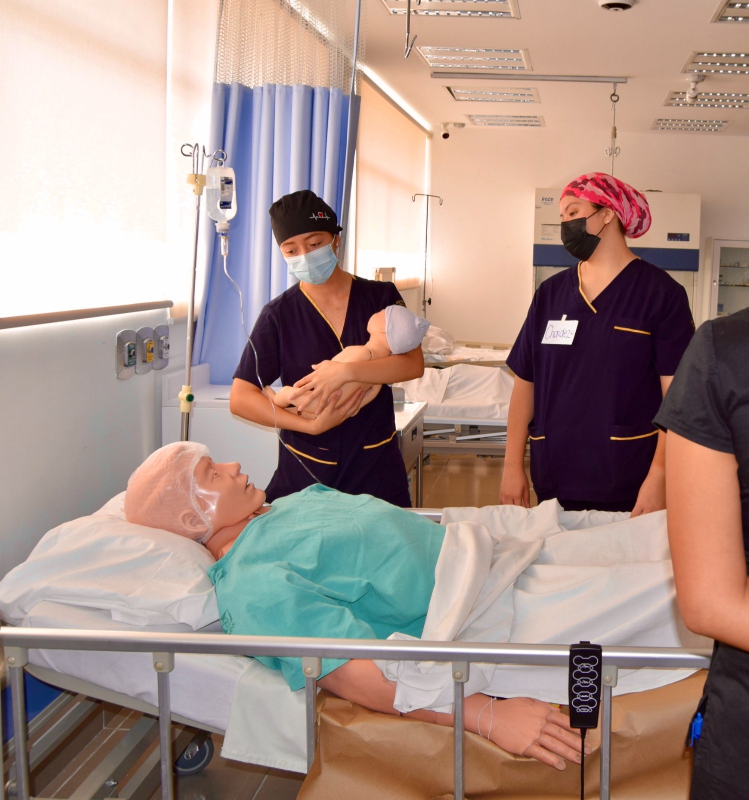 En el hospital de la División de Ciencias de la Vida, las y los estudiantes del 4.º semestre se desempeñaron en las áreas de admisión (Triage), en sala de expulsión y sala de quirófano, en el área de recuperación y hospitalización, donde tuvieron que tomar decisiones de acuerdo con los conocimientos adquiridos en el componente teórico de la Unidad de Aprendizaje “Cuidado de Enfermería Gineco Obstétrica” y con fundamento en las Normas Oficiales Mexicanas y guías de práctica clínica.