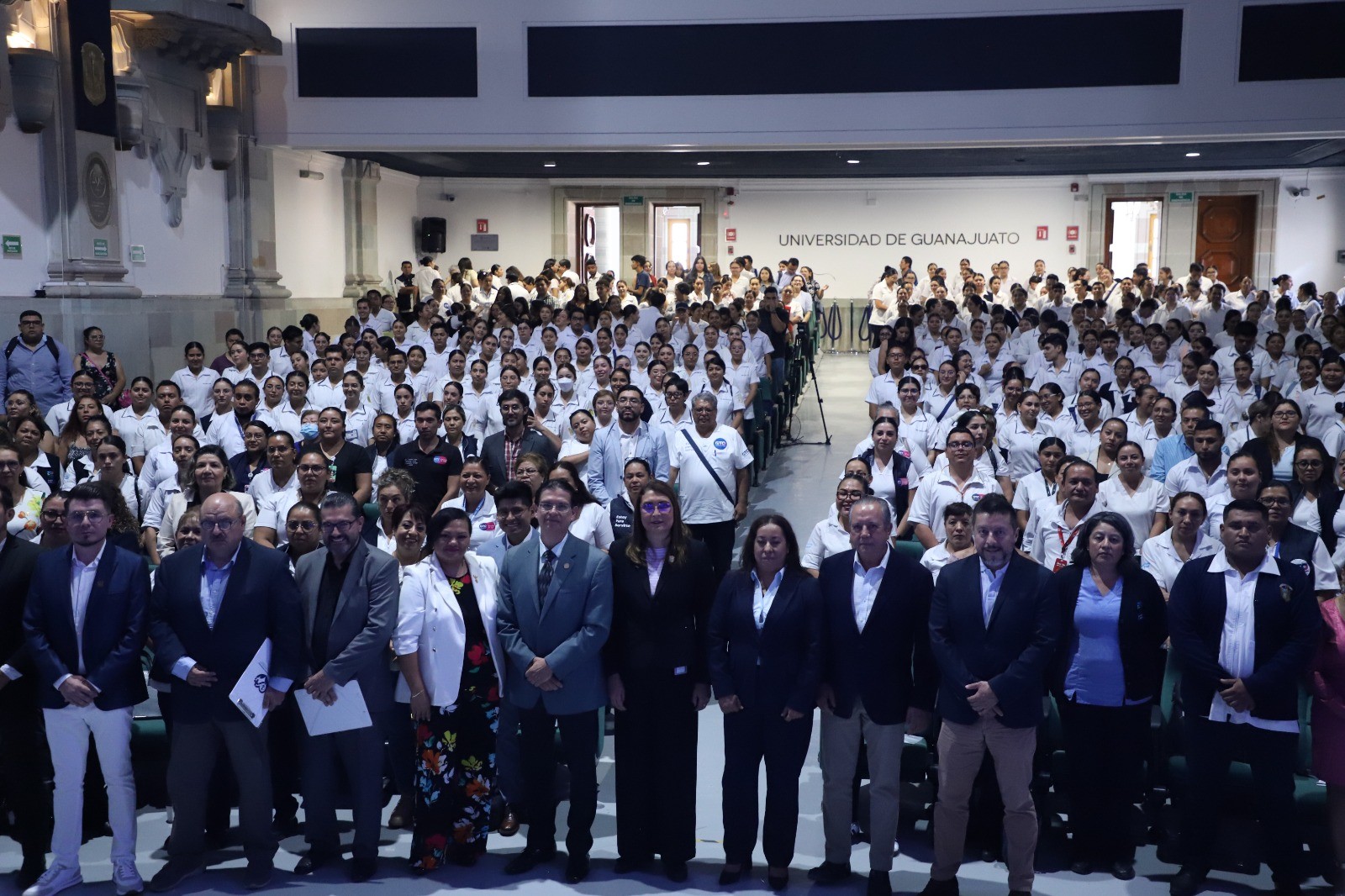Asimismo, entre aplausos, se reconoció a personal de enfermería de la Secretaría de Salud Pública del Estado, docentes de la UG, así como un reconocimiento especial por su trayectoria a la Mtra. María Ventura Martínez Olmos, por 21 años en el Departamento de Enfermería y Obstetricia de la Universidad de Guanajuato.