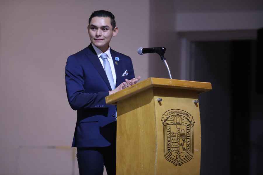 El Director de Desarrollo Estudiantil UG Lic. Gilberto Barrientos García reconoció el esfuerzo y perseverancia de las y los alumnos asistentes a la ceremonia, también, puntualizó en la educación como un pilar fundamental sobre el cual se construyen sociedades sólidas y equitativas.