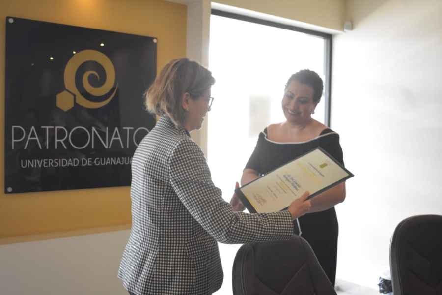 La Dra. Claudia Susana Gómez López, Rectora General de la UG, entregó reconocimientos a las y los patronos que concluyeron su gestión y en particular al Ing. Jorge Videgaray por su labor en beneficio de la Universidad de Guanajuato.