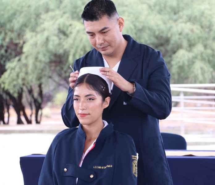 El último pase de lista estuvo a cargo de la M.C. Ericka Urbiola Rangel, quien fungió como tutora académica del grupo, mientras que los padrinos de generación, la Lcda. Amalia Álvarez Navarrp y el Mtro. Daniel Villegas Ortega, realizaron la imposición de cofias y el paso de la luz, que simboliza la transmisión de conocimientos y también un rayo de esperanza.