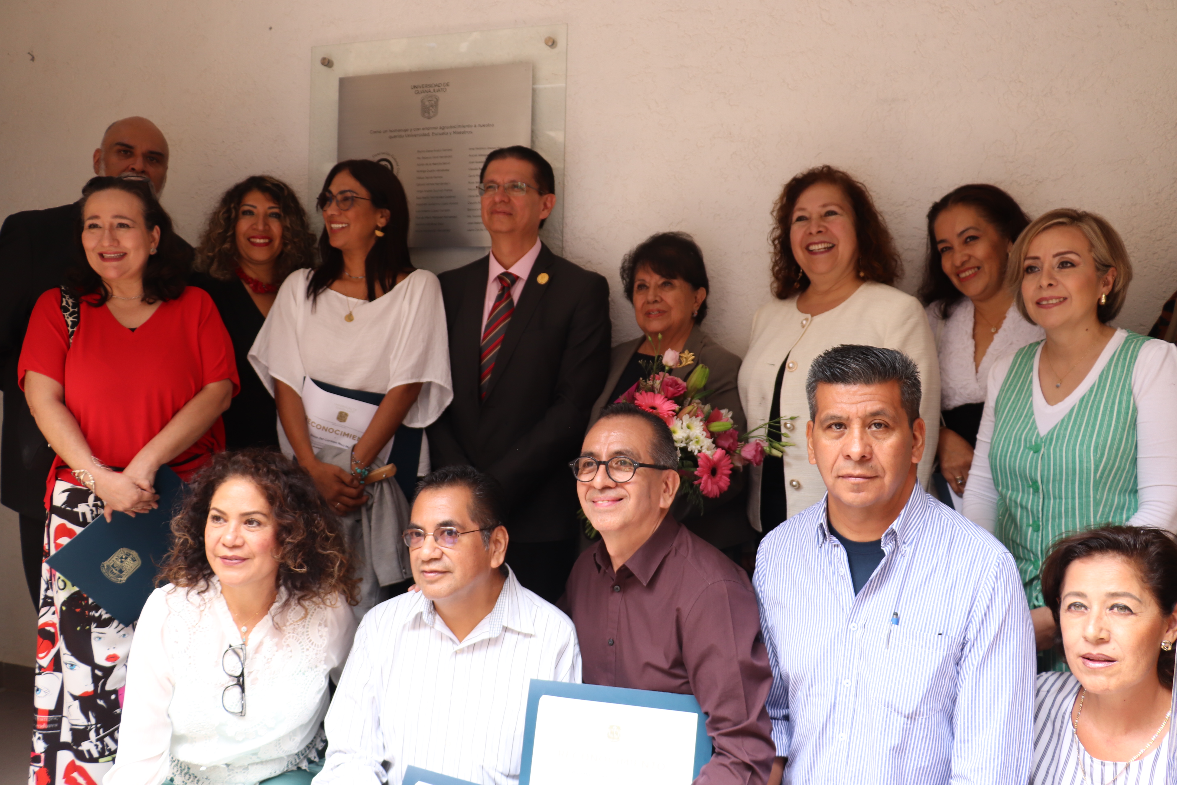 Guanajuato, Gto., a 25 de junio de 2024.- Las y los integrantes de la primera generación de la Licenciatura en Diseño Gráfico (1990-1994) conmemoraron el 30 aniversario de su egreso con la develación de una placa en el Auditorio del Departamento de Diseño, Sede los Santos, del Campus Guanajuato de la Universidad de Guanajuato (UG).