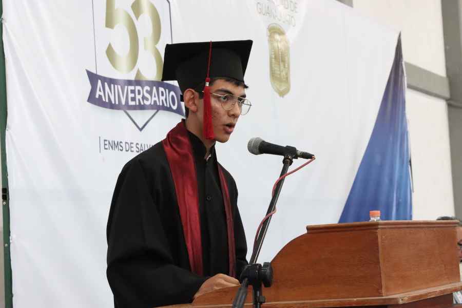 El Secretario Académico del CNMS Dr. Juan Antonio Sánchez Márquez, brindó un mensaje a las y los egresados donde mencionó que el bachillerato no es solo una fase académica; es una experiencia de vida que moldea y transforma, durante esos años, no solo adquirieron conocimientos en matemáticas, ciencias, historia y arte, también han aprendido sobre la amistad, la perseverancia, el trabajo en equipo y la importancia de nunca rendirse, incluso ante los desafíos más difíciles, añadió. Agradeció a las y los docentes y madres y padres de familia ya que han sido los pilares de su trayectoria académica.
