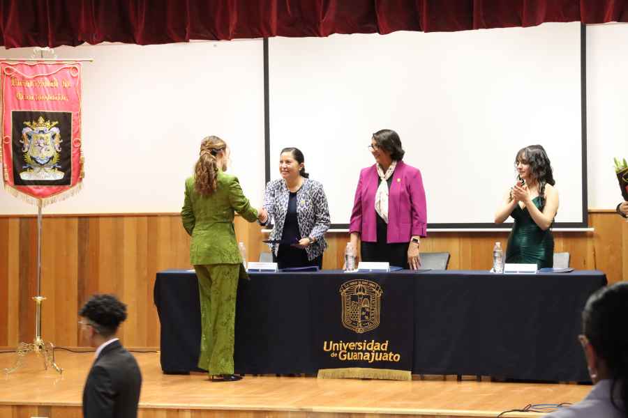 Durante su intervención, la Coordinadora General del Desarrollo Académico del CNMS Mtra. Ma. Eugenia Ibarra Rodríguez, felicitó a toda la comunidad estudiantil y comento que la culminación de los estudios de bachillerato se debe celebrar ya que han superado los desafíos sin precedentes durante toda su formación, debido a la época de pandemia que les toco enfrentar y que al día de hoy les permite observar su resiliencia y dedicación. Posteriormente agradeció a las madres y padres de familia por confiar en la Universidad de Guanajuato y por ser el pilar de cada una y uno de los estudiantes.