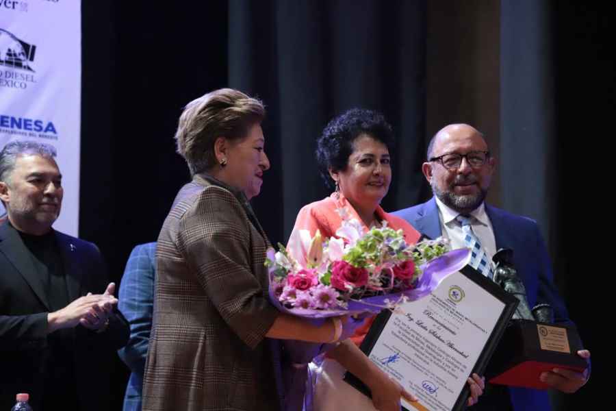 Asimismo, se sumó al reconocimiento que la Asociación hizo a cuatro de sus integrantes: la Ing. Layla Silahua Abirrached, primera mujer egresada; y a los ingenieros Raúl García Reimbert, José Vicente Morales Zárate (QEPD) y a la Sra. Victoria Macías Valdez, por sus aportaciones como integrantes de la comunidad minera.