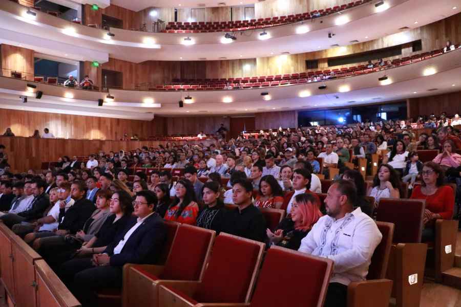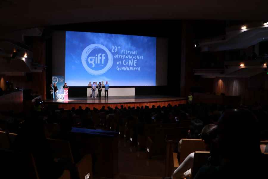León, Gto., a 19 de julio de 2024.- La sala principal del Teatro del Bicentenario “Roberto Plasencia Saldaña” exhibió el trabajo de integrantes de instituciones educativas del nivel superior de la entidad a través del estreno oficial de seis proyectos fílmicos, mismos que conforman la Generación 2024 del 14° Concurso de Documental Universitario “Identidad y Pertenencia”, categoría formativa de la XXVII edición del Festival Internacional de Cine de Guanajuato (GIFF).