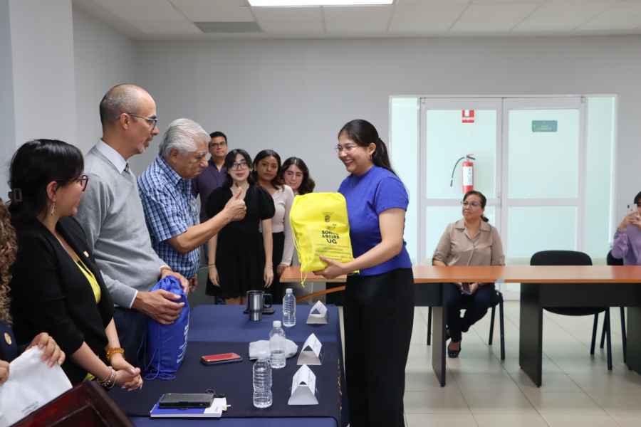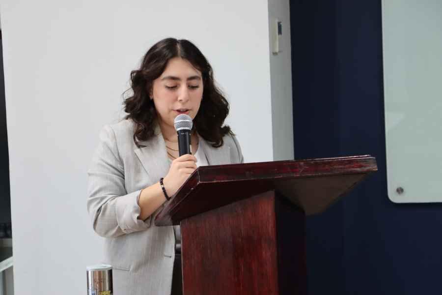 Verónica Isabella Castro Montiel, alumna del programa de Licenciatura en Psicología Clínica, tomó la palabra en representación de lo(a)s alumnos, hizo un recuento del proceso y de los altibajos a los que se han enfrentado para cristalizar este objetivo y expresó su confianza en que esta etapa les permita conocer una nueva versión de sí mismos. A su vez, aplaudió la valentía de vivir esta experiencia de crecimiento, con el compromiso de poner en alto a la Universidad de Guanajuato y lo que representa ser abeja.