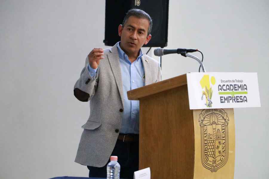 Al hacer uso de la voz, en representación de la Rectora General de la Universidad de Guanajuato (UG), Dra. Claudia Susana Gómez López, el Coordinador General de Ecosistema de Vinculación, Innovación, Desarrollo y Aplicación del conocimiento VIDA UG, Dr. Christian Gómez Solís, manifestó que aproximarse a emprendedore(a)s nutre la búsqueda de alternativas y propuestas, mismas que se verán apoyadas por el trabajo conjunto entre especialistas y empleadore(a)s.