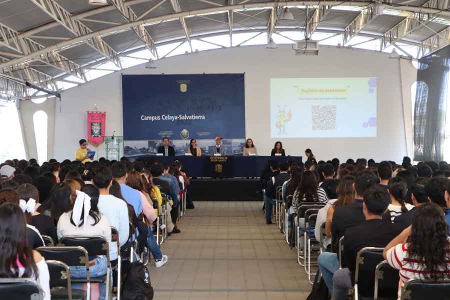 Celaya, Gto., a 07 de agosto de 2024.- El Campus Celaya-Salvatierra de la Universidad de Guanajuato (UG) recibe a 777 estudiantes que se integran a “La Colmena” en el ciclo agosto- diciembre 2024. De estos, 477 pertenecen a la División de Ciencias de la Salud e Ingenierías (DCSI) y 300 a la División de Ciencias Sociales y Administrativas (DCSA).
