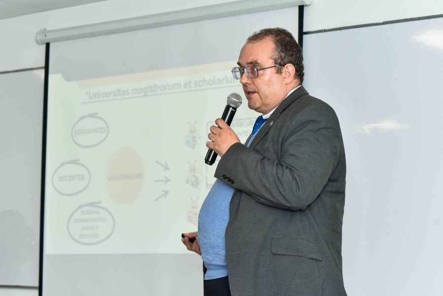 Finalmente, participó el Dr. David Yves Ghislain Delepine. En su presentación destacó la vinculación del campus con otras entidades; enumeró fortalezas y debilidades de este; y se refirió a las necesidades de la comunidad universitaria. Identificó a la comunidad en tres componentes: comunidad estudiantil, personal académico y personal administrativo, de apoyo y servicios, los cuales van orientados a formar recursos humanos integrales, generar conocimiento nuevo y una cultura democrática de la paz. Mencionó ejes prioritarios como el fortalecimiento de la atención al personal académico y administrativo, comunidad estudiantil, cultura de la paz, vinculación y extensión, calidad de los programas educativos e investigación.