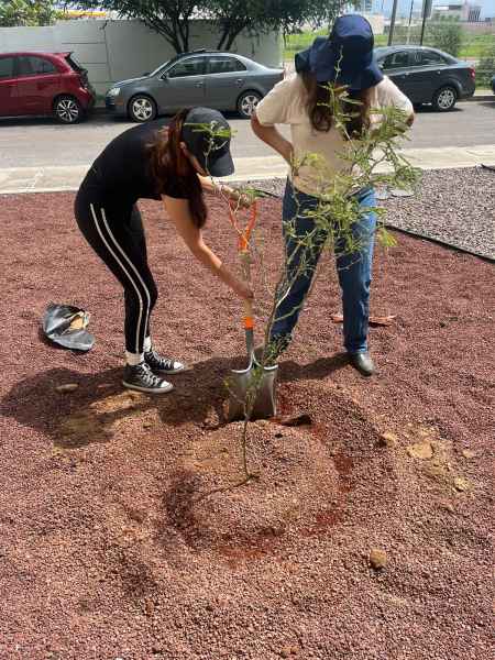Esta primera etapa consistió en la plantación de 100 árboles de la especie mezquite, la cual además de ser una especie nativa de la región, requiere poca agua, crece en diversos tipos de ambientes y tiene la peculiaridad de enriquecer el suelo y promover el crecimiento de matorrales. De igual manera, el contar con espacios arbolados, disminuye la temperatura del entorno y proporciona la generación de hábitat para la fauna silvestre de la región.